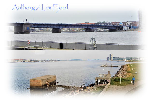 半島北部の街オールボー。デンマーク国鉄は川のように見えるリムフィヨルドを渡り、セルチュー島の軍港Frederihavnへと続きます。