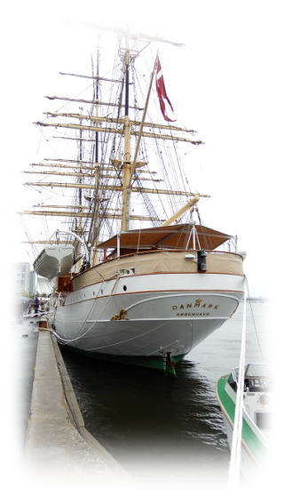 リム・フィヨルドのオールボー港では、デンマーク海軍の帆船が停泊、大砲を備えた軍船もあって、小規模な水上訓練が行われていました。現代も水際の要所の役面は変わらずといった感じです。