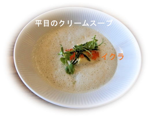 イクラとレモングラス他ハーブも添えられ、北海のデーニッシュスープは大変良いお味でした。