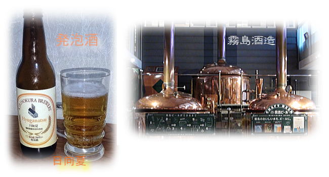 霧島連山の東西に地ビールがあります。東側は、宮崎県都城市の霧島酒造で生産されている英国風レシピの霧島麦酒。西側は鹿児島県霧島市、チェコのピルゼニュ(ピルス)麦酒を意識した物です。