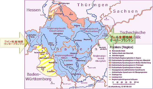 ビールは大麦で仕込まれるのに対し、小麦を50%以上使用したヴァイス、ヴァイセ、ヴァイツェン(南部ドイツ以外の呼称)というビールもこの地域の定番。